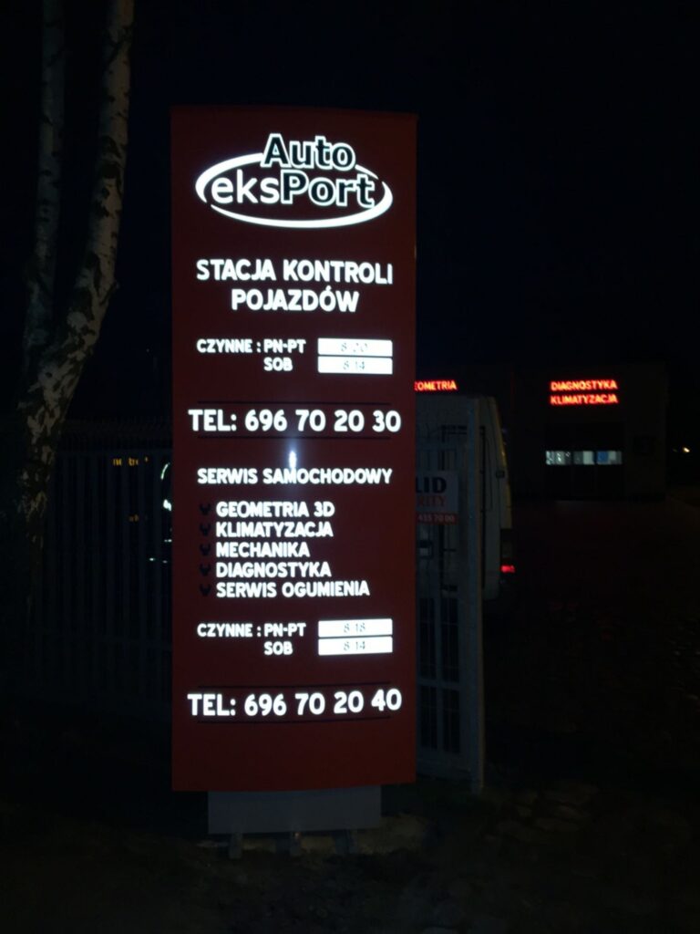 Podświetlane logo, pylon i kasetony reklamowe dla Auto Eksport